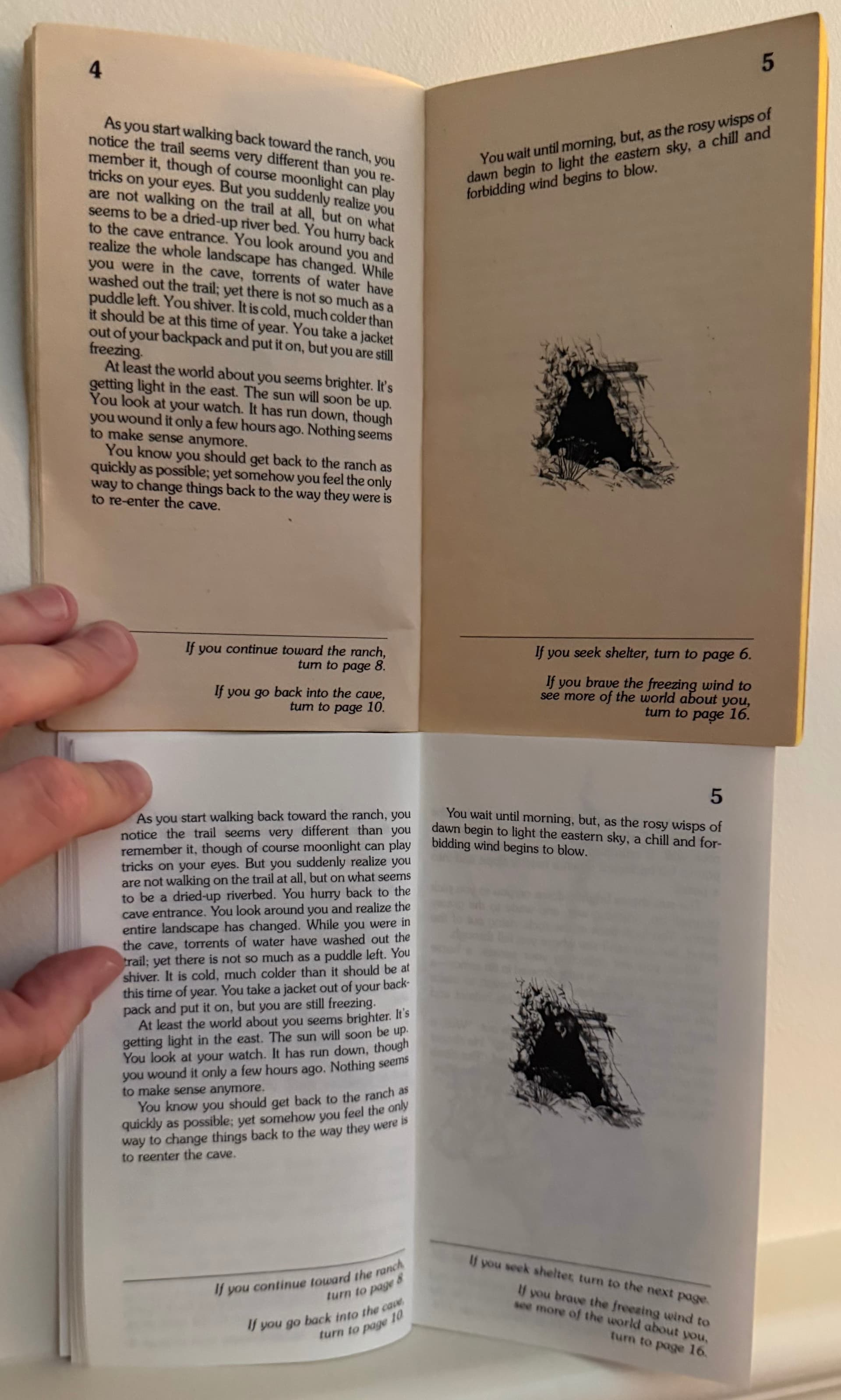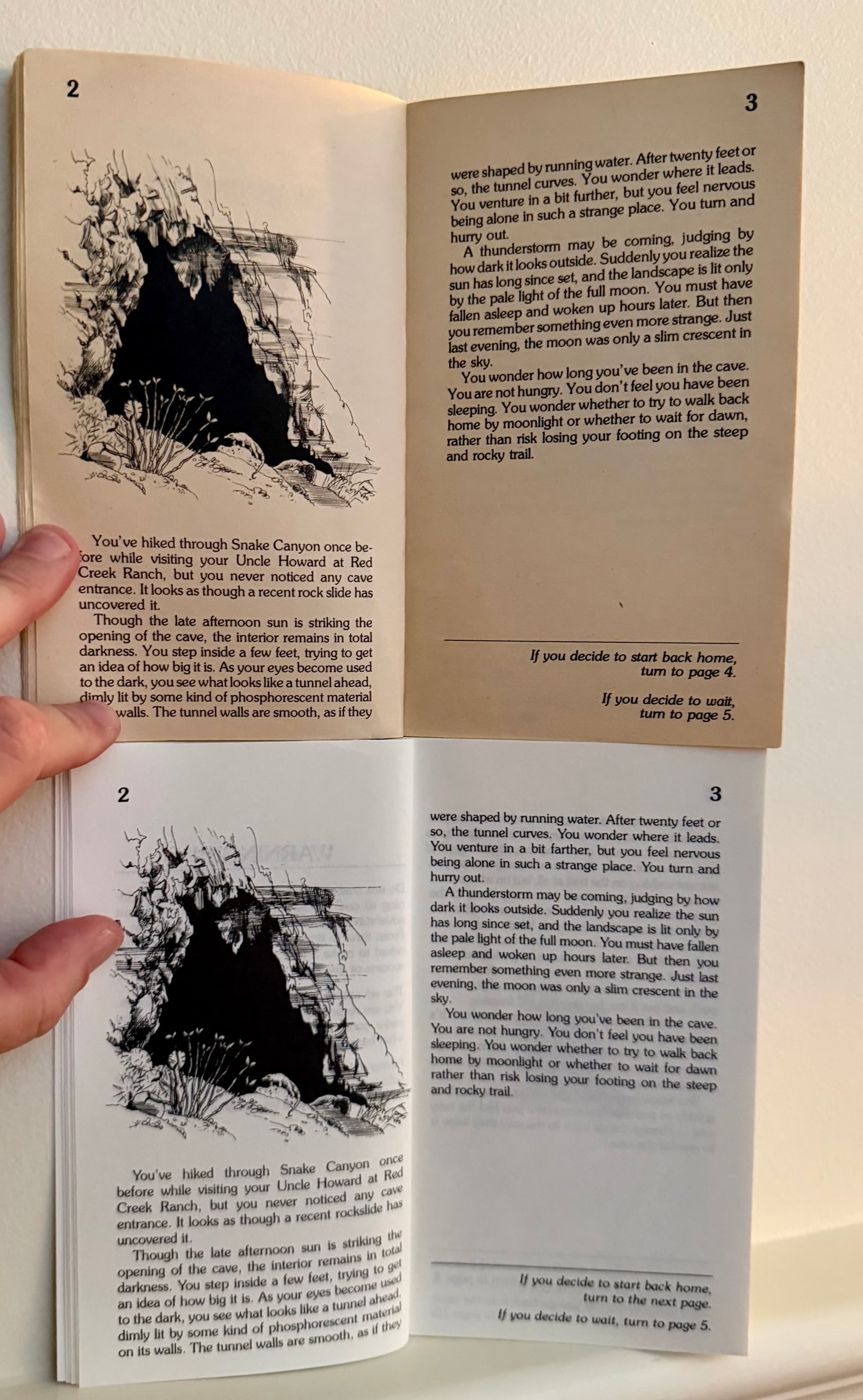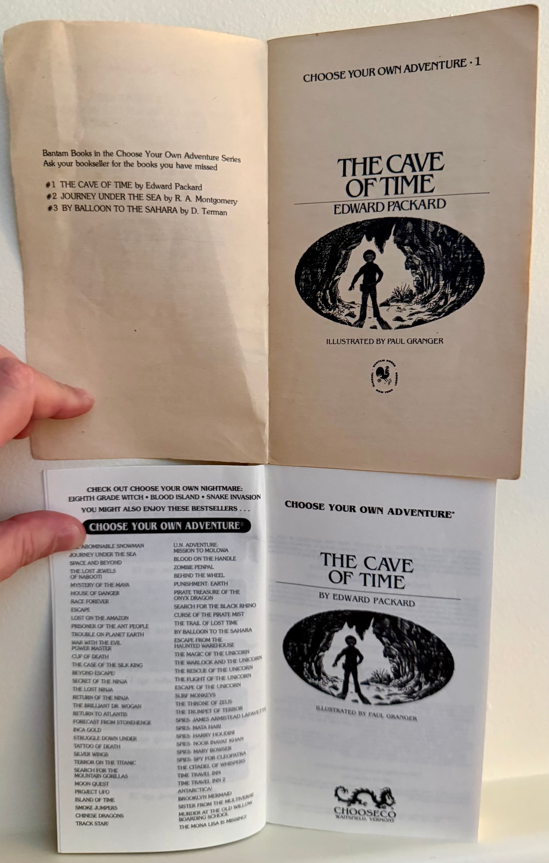 Here’s a comparison of the recently (2025) reissued classic Choose Your Own Adventure book collection (1-4) with my original copy of Cave of Time from when I was a kid around age 8, kept by my mom.. she recently sent it to me, so I did a quick comparison, all the front pages up to page 5.