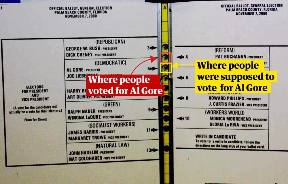 The famous Butterfly Ballot incident, first the recreation: